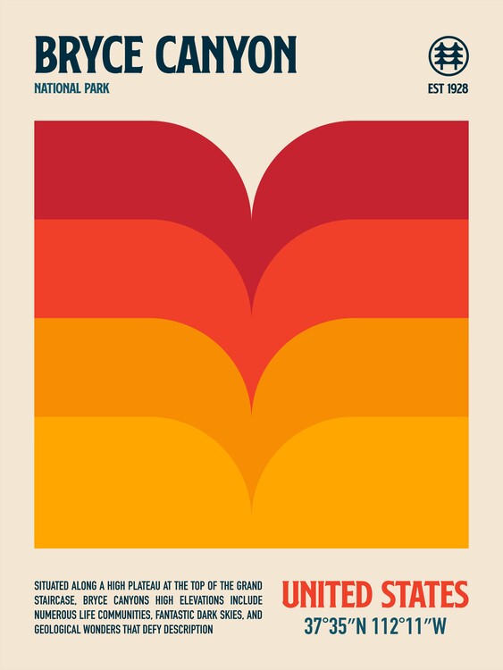 Leinwand Poster, Bilder Bryce Canyon National Park Travel Poster, Retrodrome, 60 × 80 cm